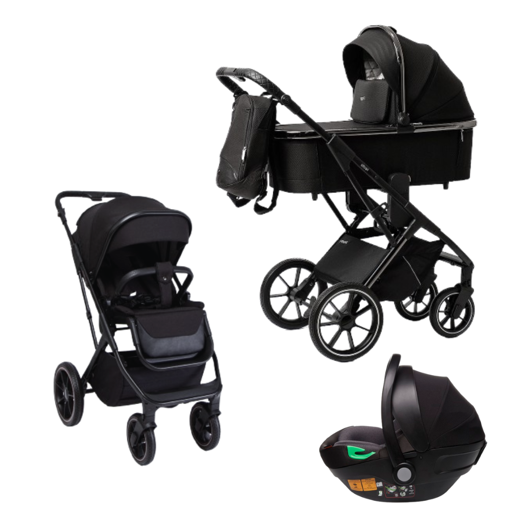 Коляска детская Peppy Tecla 3 в 1 Shadow Black Chrome Edition (Черный) (автолюлька+адаптеры Peppy)